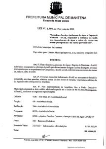 ART 1°- Fica o Serviço Autônomo de Água e Esgoto – SAAE, autorizado a suspender a cobrança pela tarifa pelo fornecimento de água e coleta de esgoto, prestados aos usuários que se enquadrarem na Categoria A1 (tarifa social), referente aos consumos dos meses de junho e julho de 2020.