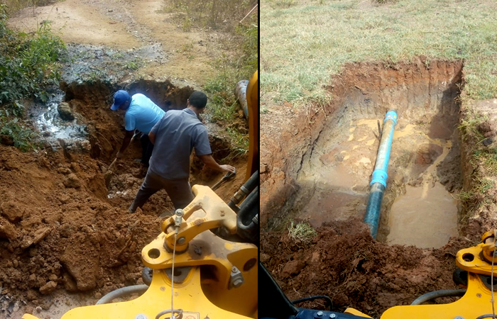 De acordo com o encarregado, a rede de 200 mm estava com vazamentos em dois lugares distintos, e ainda em uma ventosa que foram reparados.